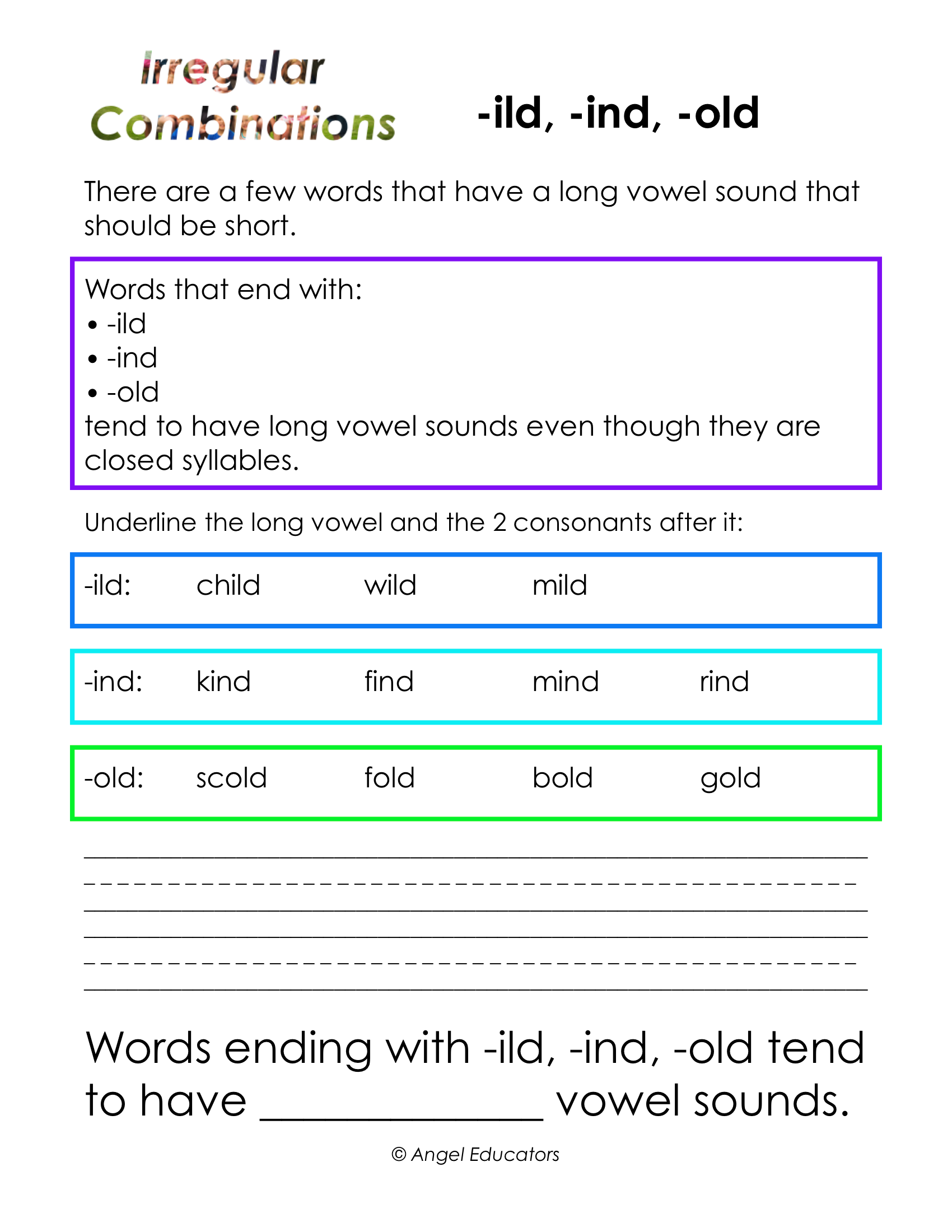 Help your dyslexic reader, or any reader wishing to improve, understand irregular combinations of letters that aren't pronounced phonetically. For example, the letters -alk together should sound like the ending of 'talc.' However, the a sounds like ô, and the l is silent as in 'talk.' Discover other irregular combinations and their correct pronunciation. Then, practice application of these combinations. 20 pages